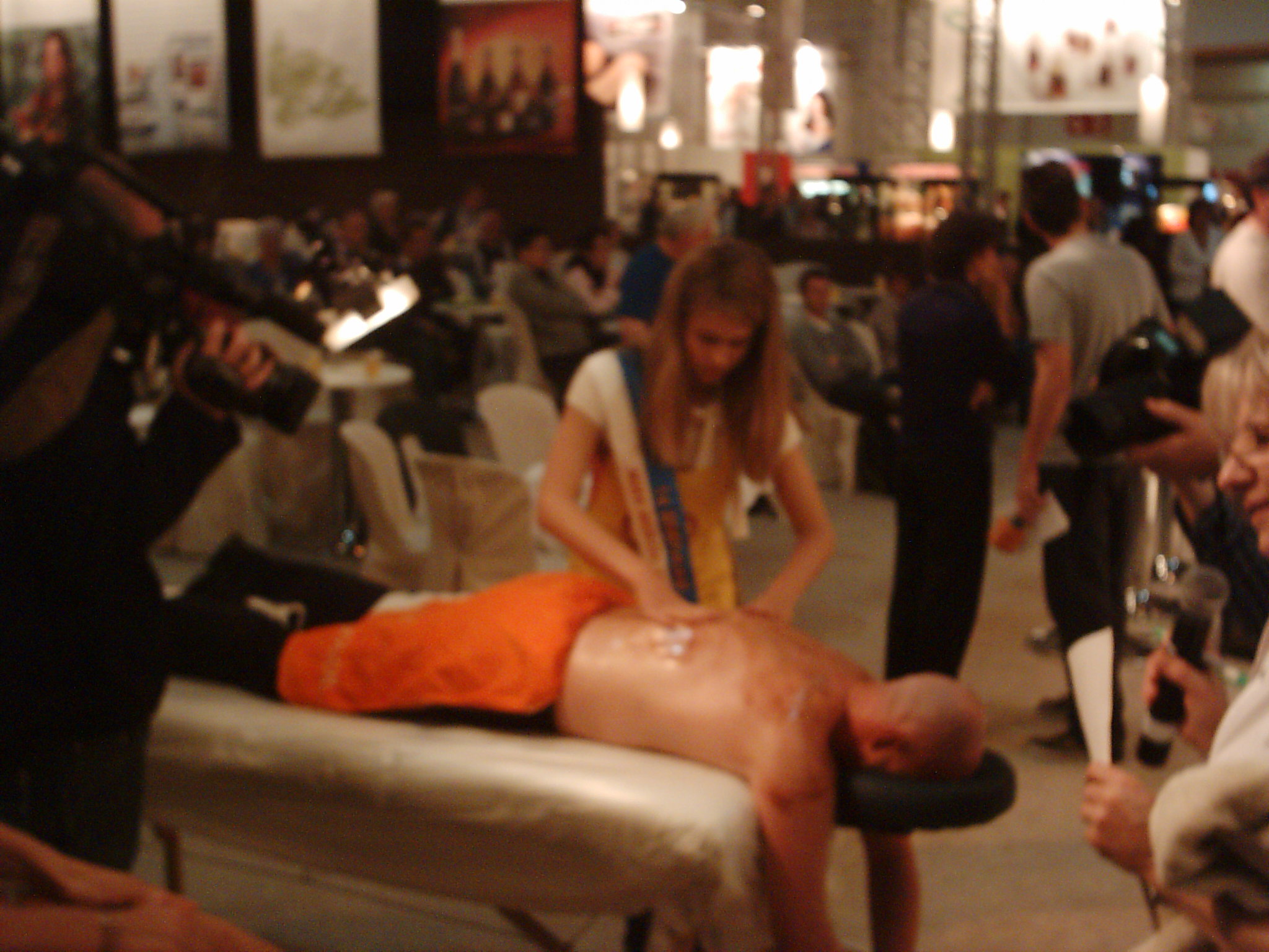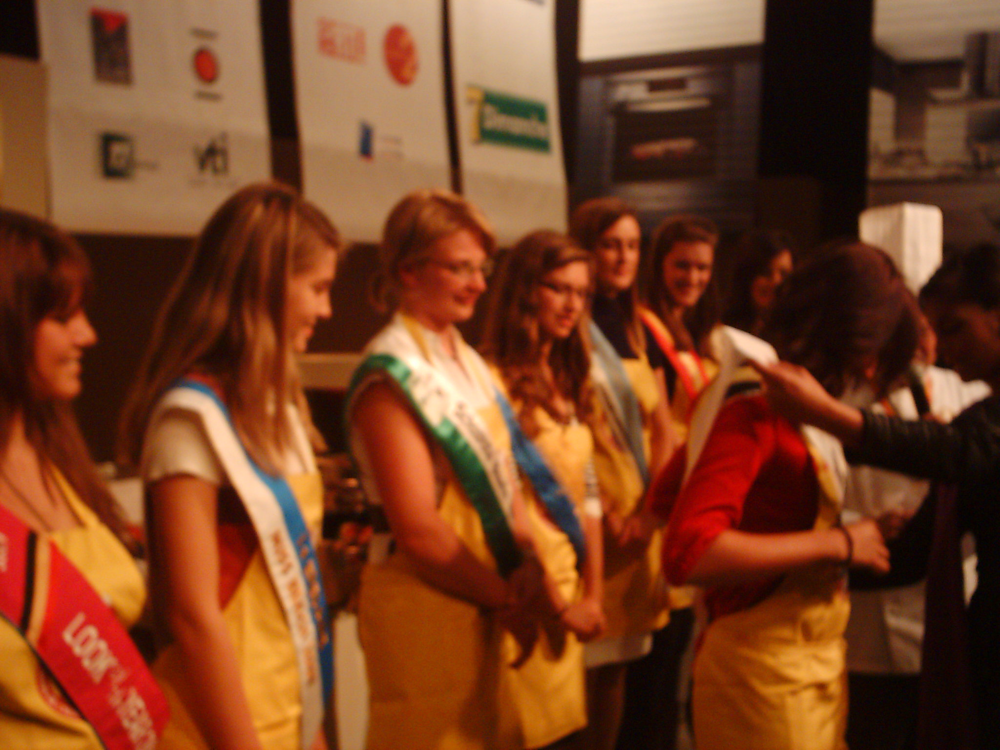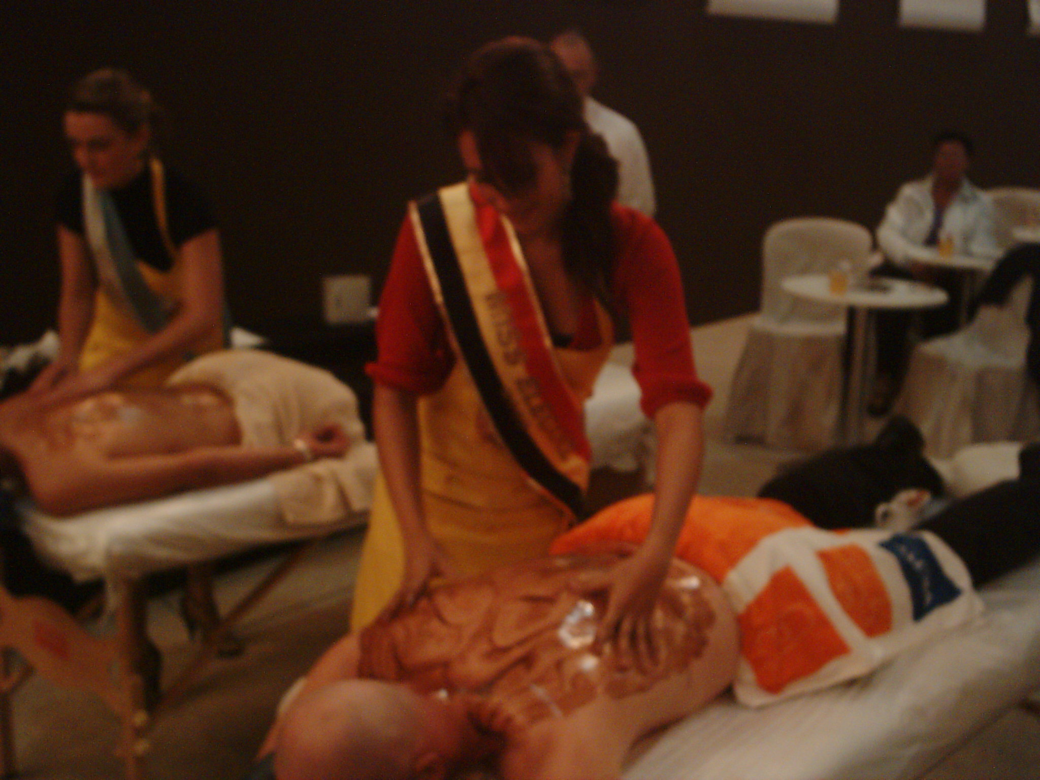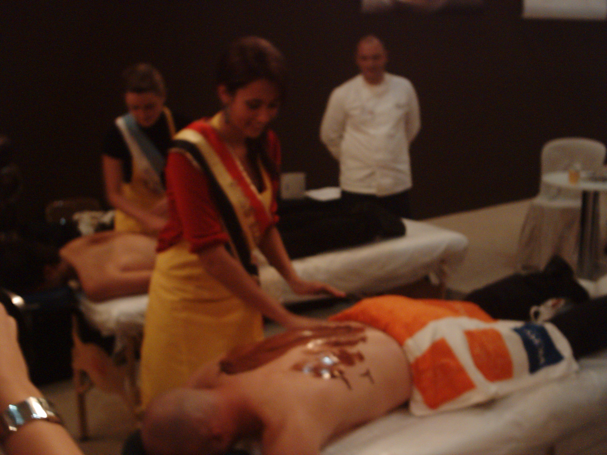 Acht regerende missen namen deel aan de verkiezing. Eén van de proeven die ze moesten vervullen was een Chocolade massage.